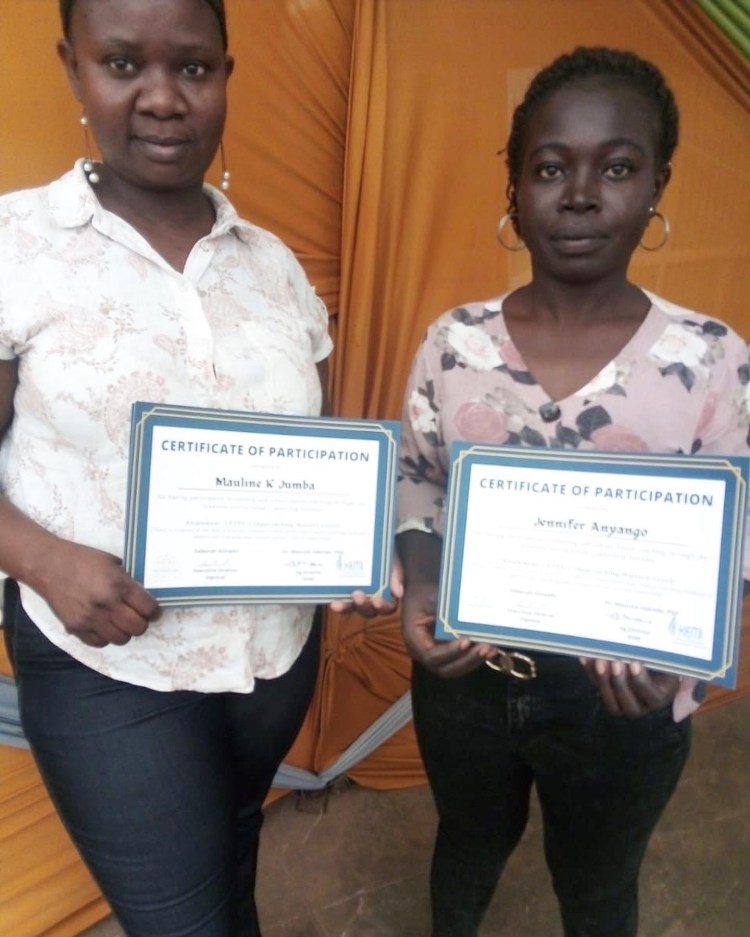 Das sind Mauline, Jennifer und Loyce, drei unserer fantastischen Lehrerinnen, die über die letzten Monate einen Kurs zur Vertiefung ihres Wissens zur frühkindlichen Entwicklung besuchten. Mit der Verleihung des Abschlusses und der Zertifikate fand der Kurs nun ein Ende.