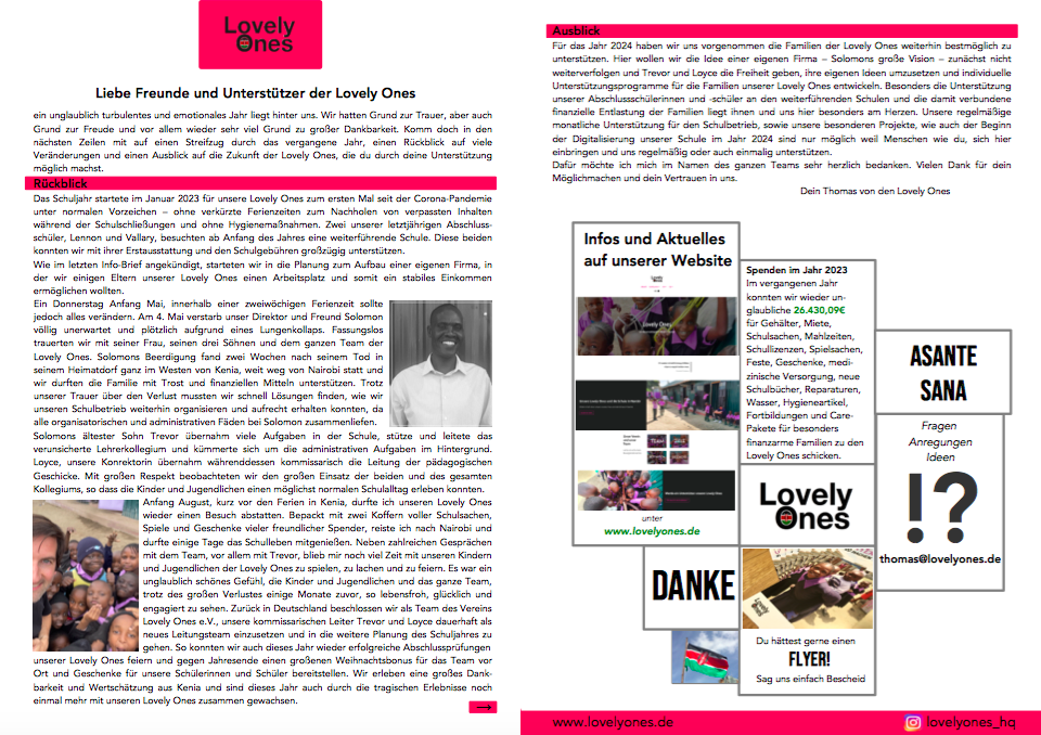 Danke an alle Freunde der Lovely Ones, dass ihr mit uns gemeinsam auch durch die herausfordernden Zeiten gegangen seid und geht.