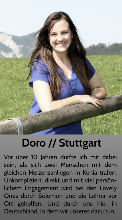 Das Team der Lovely Ones besteht aus unterschiedlichen Menschen an ganz unterschiedlichen Orten. Trevor und Loyce leiten die Schule vor Ort und werden dabei tatkräftig von 6 Lehrerinnen und Lehrern unterstützt. Esther, unsere gute Seele in der Küche, kümmert sich um das „food program“ und das leibliche Wohl der Lovely Ones. Unsere Wachmänner passen vor allem in Ferienzeiten und nachts auf unser Schulgelände auf.
